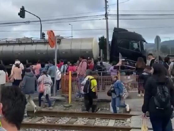 Camión detenido en vía del tren y colisión desatan caos vial camino a Coronel