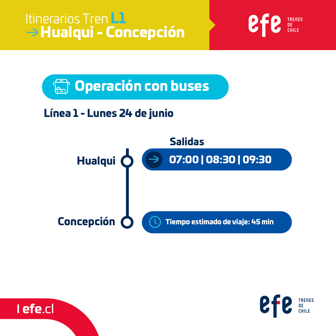 Por su parte, la Línea 1 tendrá un servicio de buses entre Hualqui y Concepción en el horario punta de la mañana.
