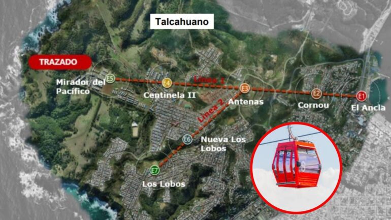 Según un comunicado de la Municipalidad de Talcahuano el proyecto considera el desarrollo de un sistema de Teleférico de dos líneas: la primera conectará el centro del puerto con el sector Mirador del Pacífico, generando conexiones con el Cerro Cornou y los sectores Antenas y Centinela II, a través de cinco estaciones. Considera una extensión de trazado de 2,9 km. Mientras que la línea 2, permitirá el traslado de pasajeros desde la estación Antenas de la Línea 1 hacia el sector Los Lobos, en una extensión de 1,3 km.