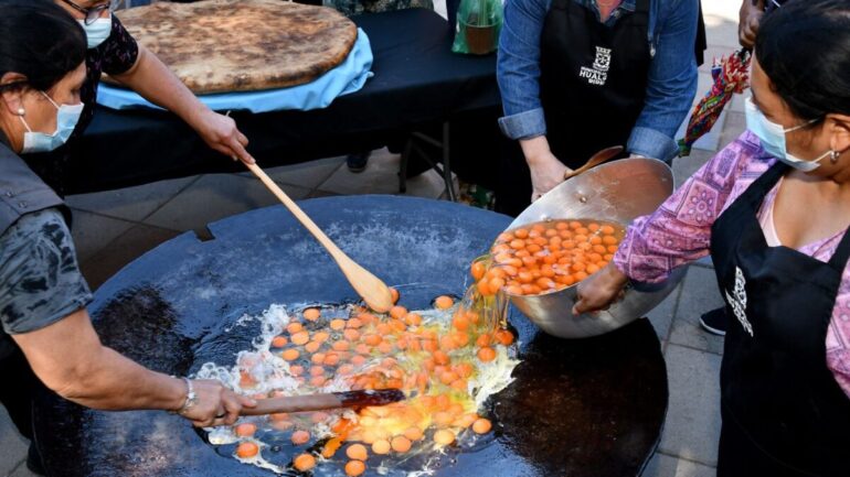 En esa línea, no andan con cosas chicas. Cientos de vecinos y visitantes llegaron hasta la Plaza de Armas de la comuna para ser parte de la primera gran “Huevada” hualquina, junto a la tortilla de rescoldo más grande del Biobío.